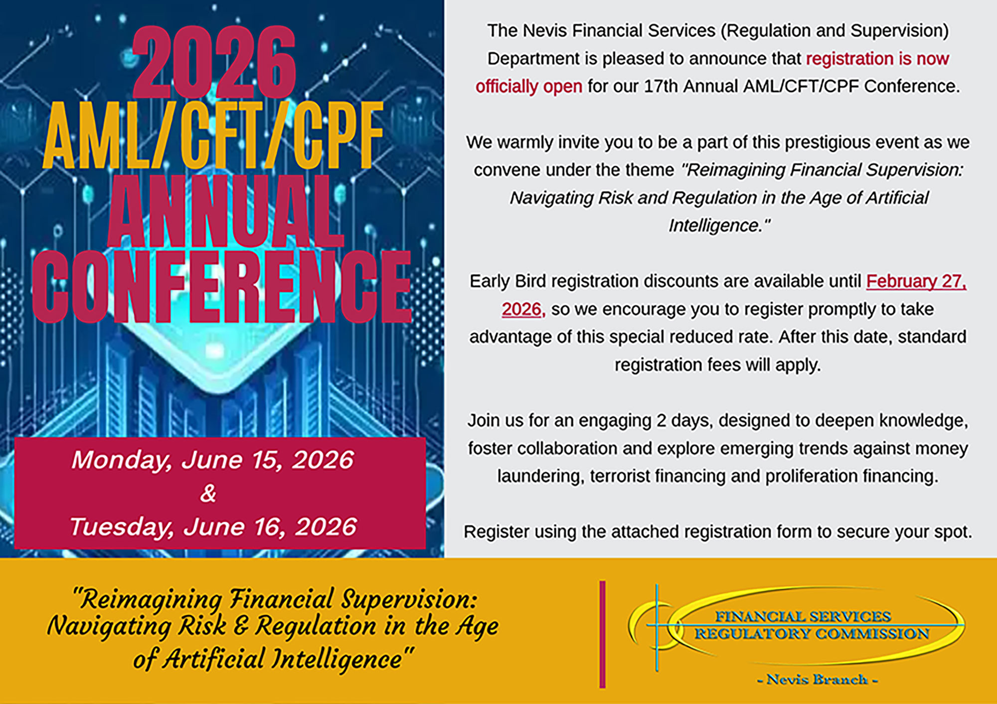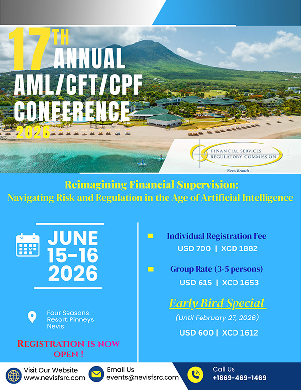 We are the ulimate regulatory body for financial services and for anti-money laundering for Saint Christopher and Nevis